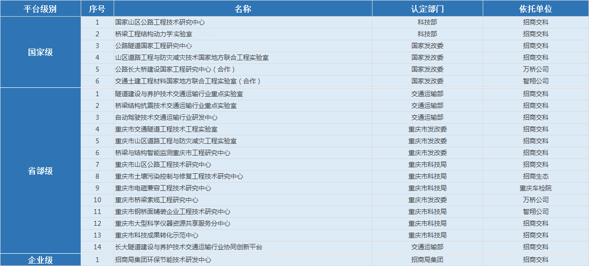 招商交科是國家級(jí)交通行業(yè)科技創(chuàng)新基地,建有國家級(jí)、省部級(jí)重點(diǎn)(工程)實(shí)驗(yàn)室和工程(技術(shù))研究中心等各級(jí)、各類研究開發(fā)平臺(tái)21個(gè),其功能覆蓋了產(chǎn)業(yè)鏈中的基礎(chǔ)研究、應(yīng)用研究、技術(shù)開發(fā)、技術(shù)轉(zhuǎn)移、工程化和產(chǎn)業(yè)化等多個(gè)環(huán)節(jié),有力支撐了公路交通行業(yè)各項(xiàng)專業(yè)技術(shù)的發(fā)展,構(gòu)建了集約高效的科技創(chuàng)新體系。