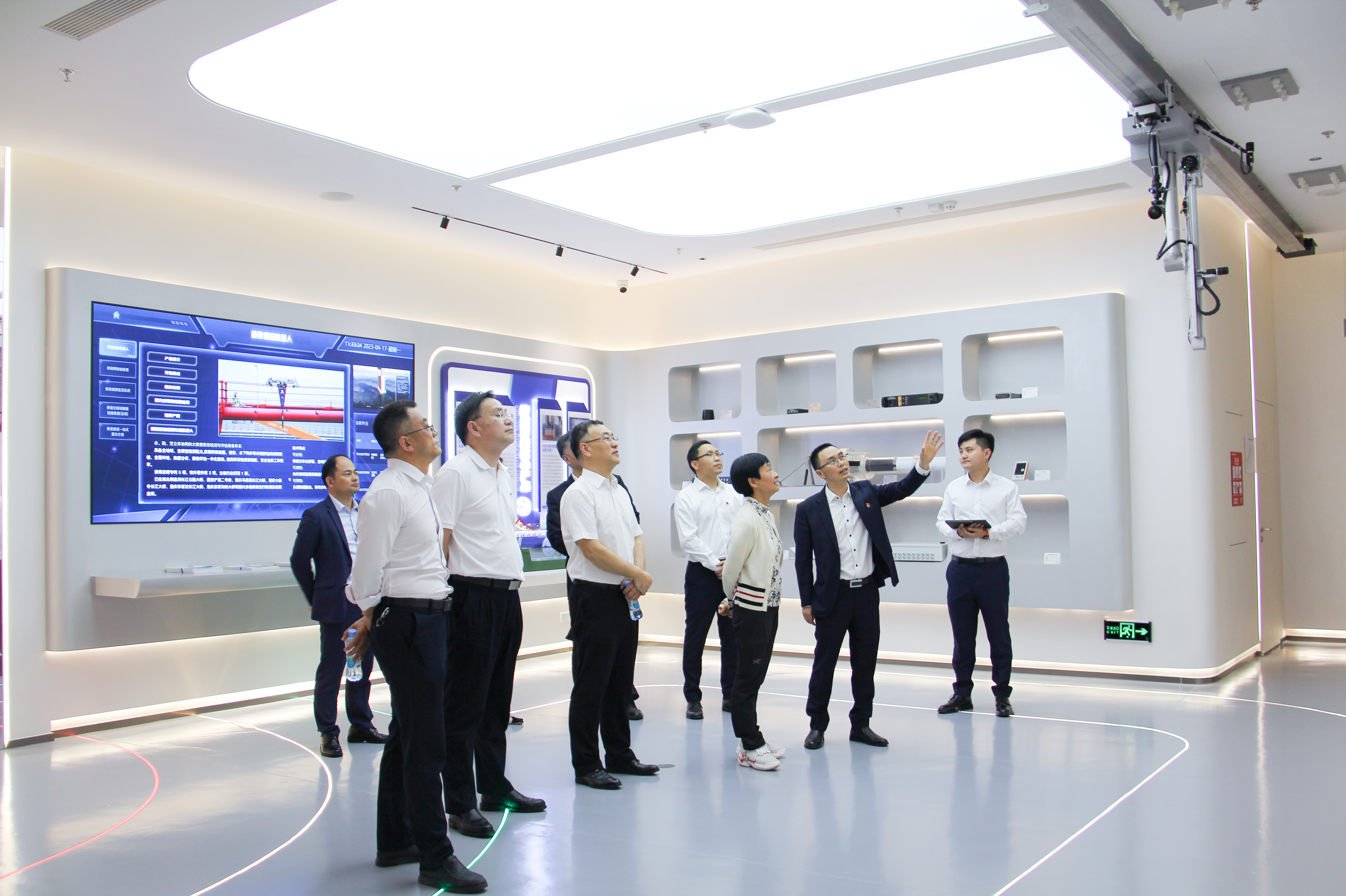 段湘暉詳細(xì)考察了重慶曾家?guī)r大橋工程項(xiàng)目(以下簡(jiǎn)稱:曾家?guī)r項(xiàng)目)及曾家?guī)r公司科技展館,聽(tīng)取曾家?guī)r項(xiàng)目建設(shè)過(guò)程、科研規(guī)劃、成果應(yīng)用、運(yùn)營(yíng)維護(hù)等情況匯報(bào),對(duì)展館中陳列展示的“交通智慧運(yùn)維平臺(tái)”“橋梁巡檢機(jī)器人”“隧道巡檢機(jī)器人”“公路隧道運(yùn)營(yíng)與安全培訓(xùn)VR互動(dòng)體驗(yàn)”等創(chuàng)新成果給予好評(píng)。