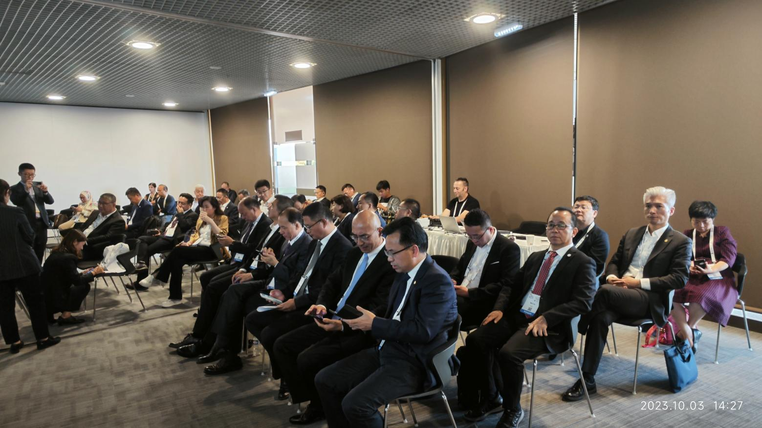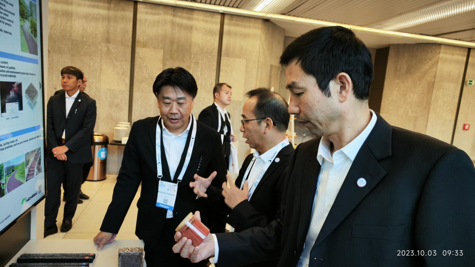 10月2日-3日上午,劉偉參加了主旨報告論壇——斯洛伐克前副總理兼財政部長 Miklos作關(guān)于烏克蘭戰(zhàn)后道路基礎(chǔ)設(shè)施重建融資方面的前瞻思考報告;隨后,對世界道路協(xié)會的各成員國的技術(shù)展臺和相關(guān)邊會進(jìn)行了全程觀摩,并與法國、英國和日本等國際友人進(jìn)行了熱烈技術(shù)交流。在中國展臺,劉偉向交通運輸部路網(wǎng)中心主任孫永紅、中國公路學(xué)會副理事長兼秘書長劉文杰、中交路橋副總經(jīng)理李剛等單位代表介紹了招商交科近況,也與陜西省公路學(xué)會理事長楊育生、陜西省交通運輸廳副廳長萬振江、中交資管董事長馮錫榮、陜西交控集團副總經(jīng)理馬小偉、貴州公路集團副總經(jīng)理張勝林等中國團有關(guān)代表進(jìn)行了互動交流。