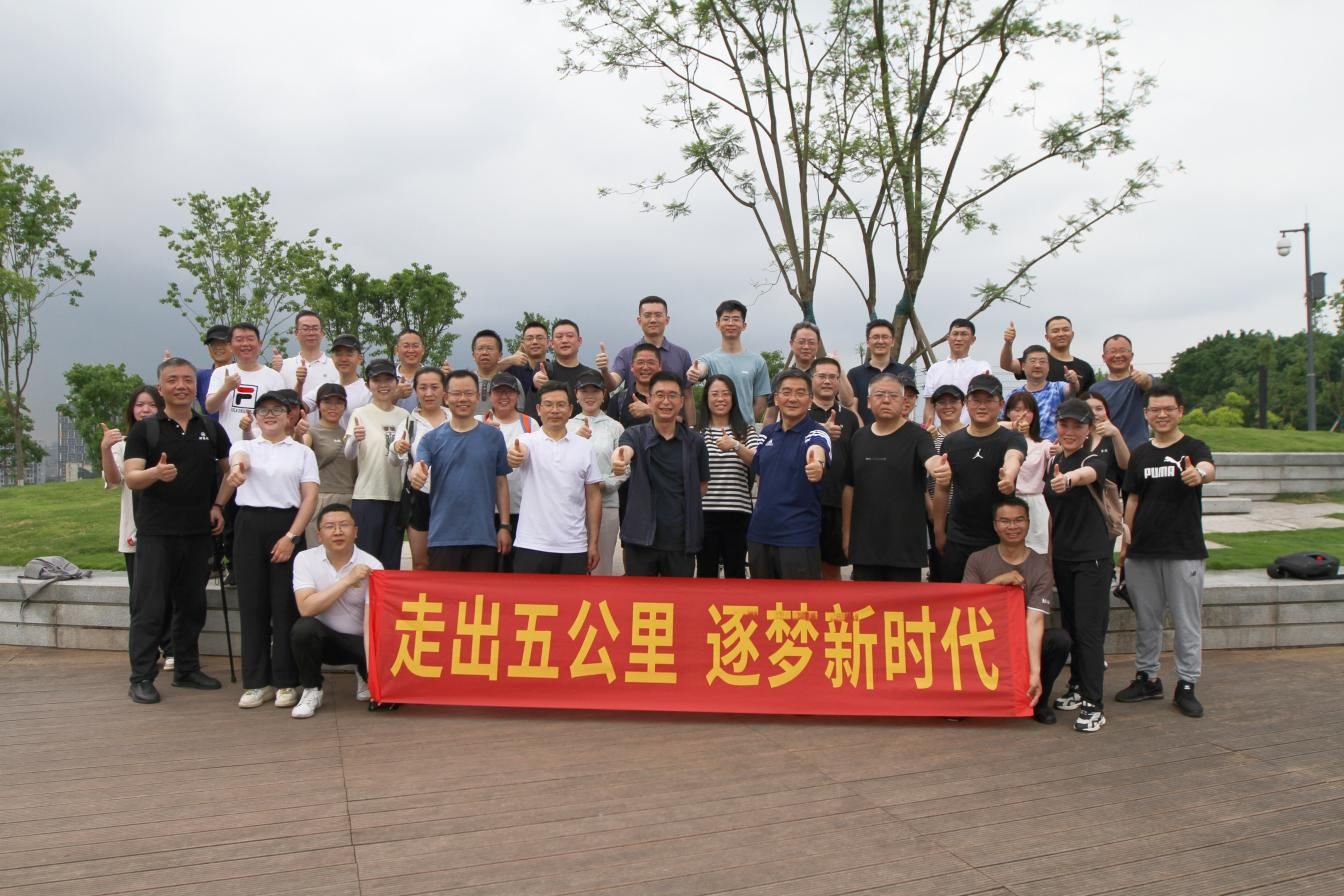 活動(dòng)結(jié)束之際,清風(fēng)徐來(lái),陽(yáng)光微現(xiàn),大家洋溢著勝利的微笑,全體人員齊聲喊出“走出五公里,逐夢(mèng)新時(shí)代”,共同為打造“兩條曲線”、推進(jìn)“第三次創(chuàng)業(yè)”加油鼓勁。