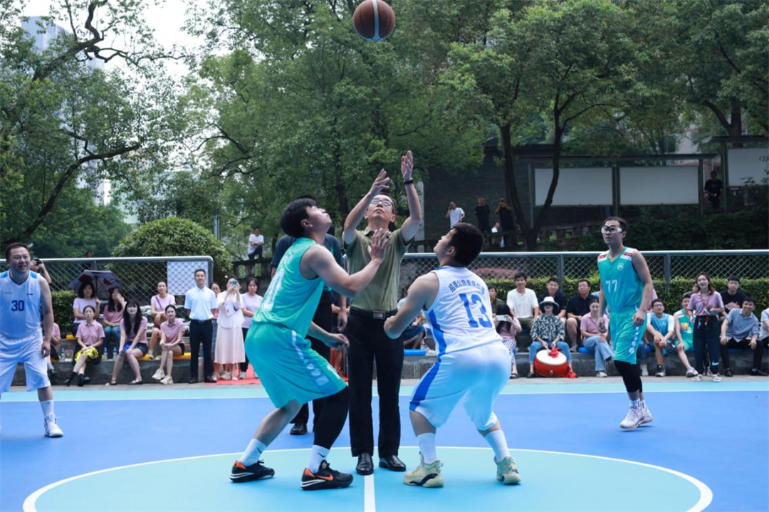 吳永清為籃球賽開球。賽場上,雙方隊員積極拼搶,氣氛緊張熱烈。每一次精準的投籃、巧妙的傳球、堅固的防守,都讓現(xiàn)場觀眾情緒高漲,熱血沸騰。球員們在場上展現(xiàn)出了不俗的球技和堅韌的競技精神,觀眾們則用熱烈的掌聲和歡呼為他們的每一次精彩表現(xiàn)喝彩。